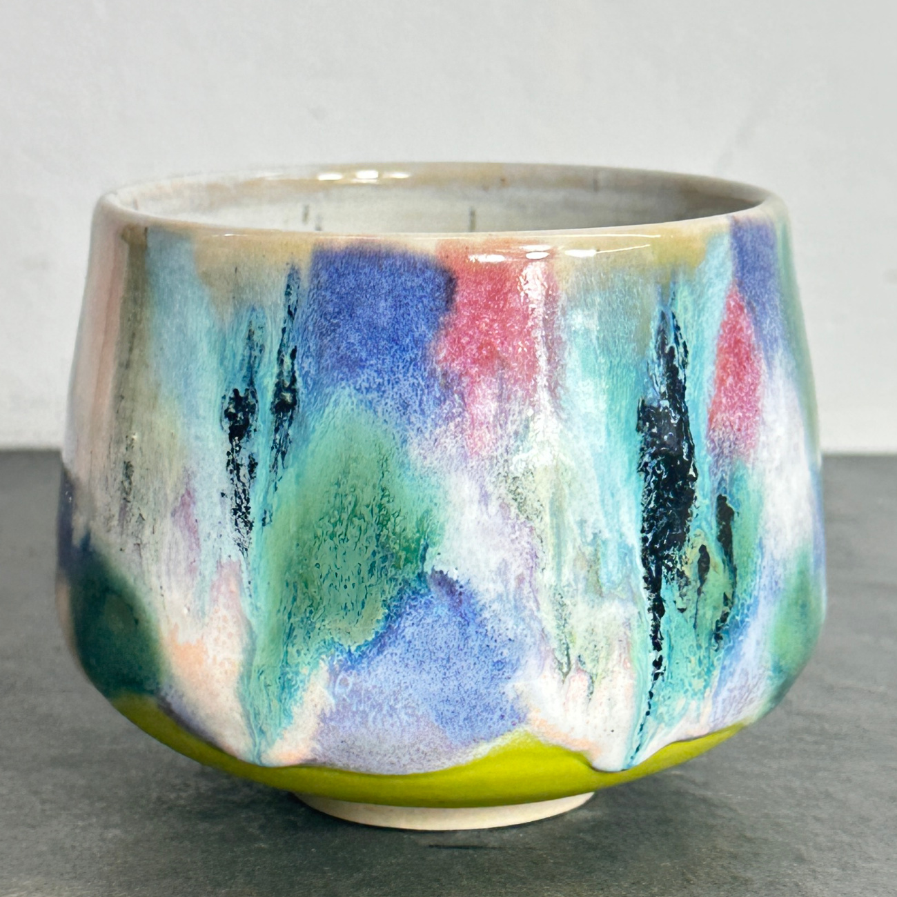 Auf der Töpferscheibe gedrehte Steinzeugchawan aus hellem Ton mit Spots, glasiert und bei über 1200 Grad Celsius gebrannt. Jedes Stück ist ein Unikat – hergestellt in aufwändiger Handarbeit und bis ins kleinste Detail perfektioniert. Handwäsche empfohlen. Innenglasur: weiß glänzend. Alle verwendeten Glasuren sind essgeschirrgeeignet, für meine Produkte verwende ich ausschließlich Glasuren, die explizit für den Kontakt mit Lebensmitteln produziert worden sind. Fassungsvermögen: 550 Milliliter. Die Chawan ist eine japanische Teeschale, die speziell für das Aufschäumen und Trinken von Matcha entwickelt wurde. Ihre Form sorgt dafür, dass sich Matcha-Pulver und Wasser optimal verbinden und ein cremiger, gleichmäßiger Schaum entsteht. Die Form der Chawan ist harmonisch rund, leicht bauchig und steht stabil auf einem dezent abgesetzten Fuß. Ein einzigartiges Unikat, das sowohl funktional als auch visuell beeindruckt.
