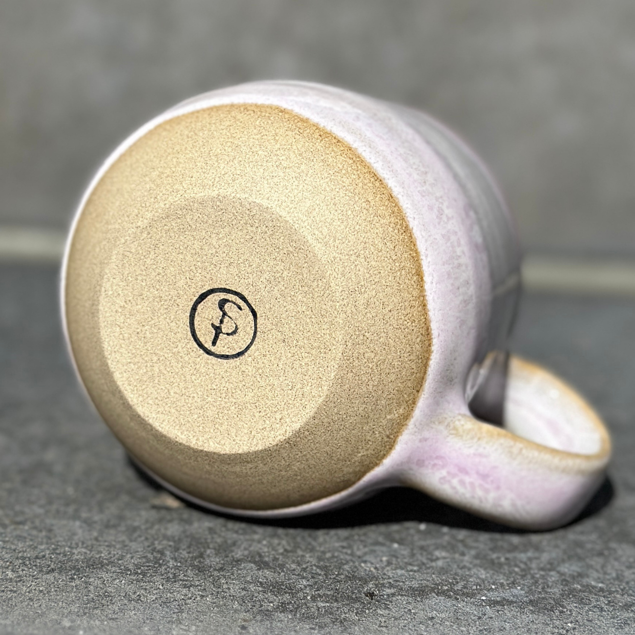 Auf der Töpferscheibe gedrehte Steinzeugtasse aus hellem Ton mit Spots, glasiert und bei über 1200 Grad Celsius gebrannt. Jedes Stück ist ein Unikat – hergestellt in aufwändiger Handarbeit und bis ins kleinste Detail perfektioniert. Handwäsche empfohlen.  Alle verwendeten Glasuren sind essgeschirrgeeignet, für meine Produkte verwende ich ausschließlich Glasuren, die explizit für den Kontakt mit Lebensmitteln produziert worden sind. Fassungsvermögen der Mini-Mugs: zwischen 200 und 250 Milliliter. Die Tassen der Glasurenkollektion weichen voneinander in Form und Größe ab.